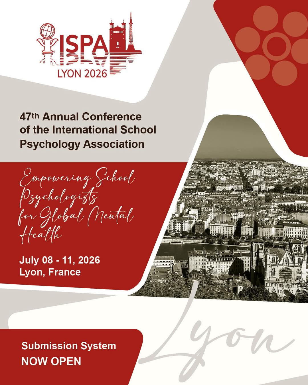 8 – 11 juillet 2026 – 47e Conférence annuelle de l’Association internationale de psychologie scolaire (ISPA 2026)