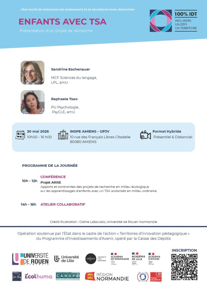 20 mai 2026 – Conférence / Atelier – Enfants avec TSA, présentation d’un projet de recherche (Projet ARISE)