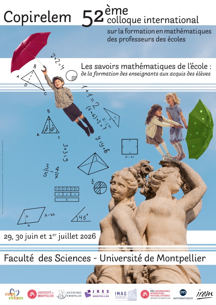 29, 30 juin – 1er juillet 2026 – 52e Colloque international sur la formation en mathématiques des professeurs des écoles (COPIRELEM 2026)