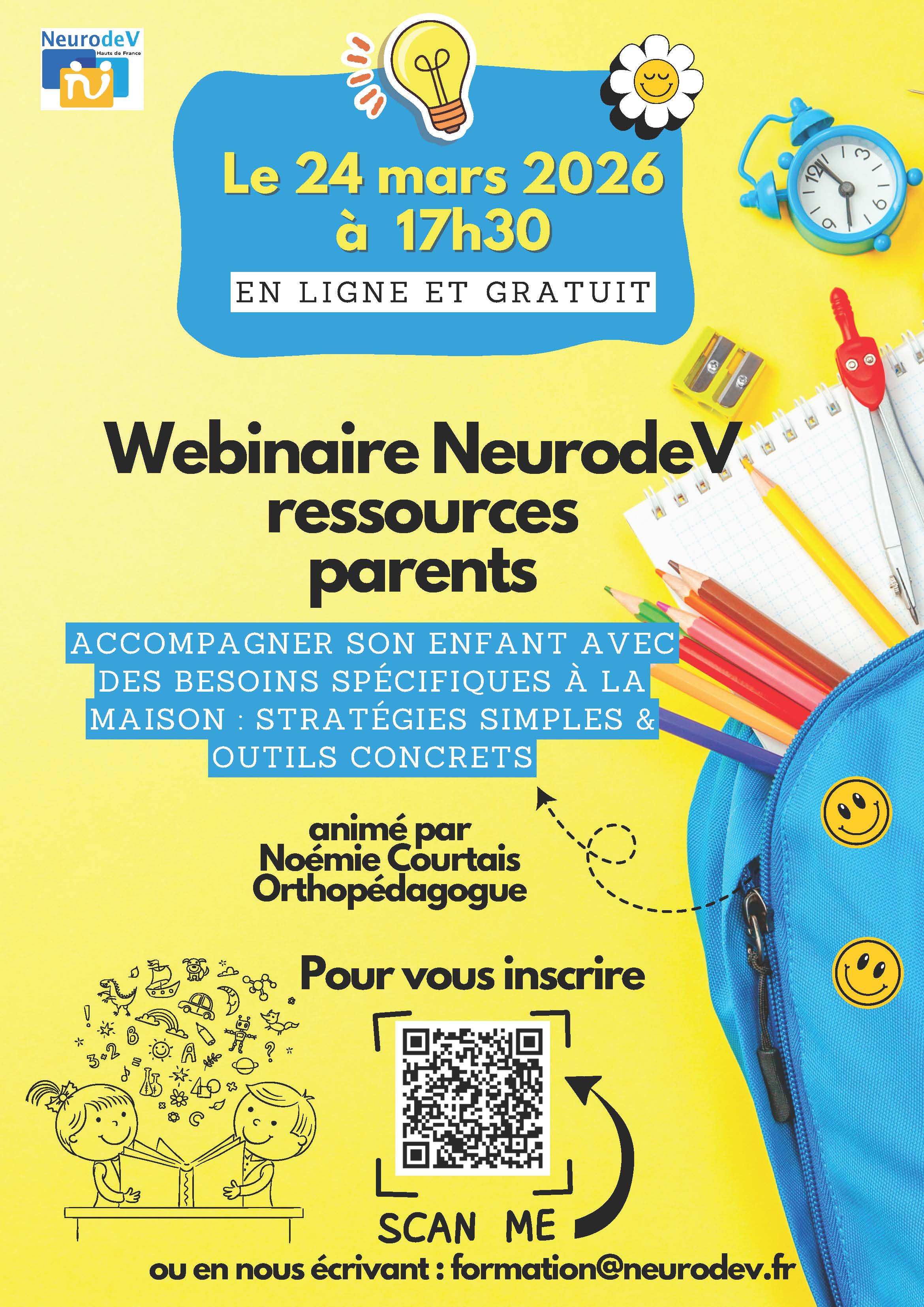 24 mars 2026 – Webinaire NeurodeV Ressources Parents – Accompagner son enfant avec des besoins spécifiques à la maison : stratégies simples et outils concrets