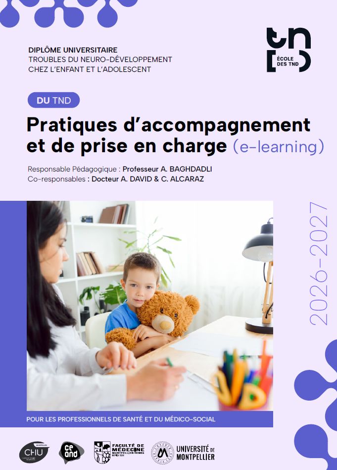 Site web :  https://du-diu-facmedecine.umontpellier.fr/diplome-approfondissement-sur-les-troubles-du-neurodeveloppement-chez-lenfant-et-ladolescent-124
