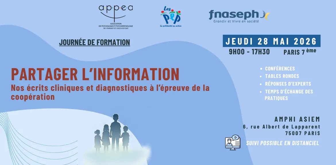 * N.B : Cette journée initialement intitulée « Information partagée : que faut-il échanger et comment ? – Écrits professionnels, confidentialité dans le domaine médicosocial et social de l’enfance » adapte son titre depuis le 14 avril 2026 pour mieux rendre compte des interventions proposées.