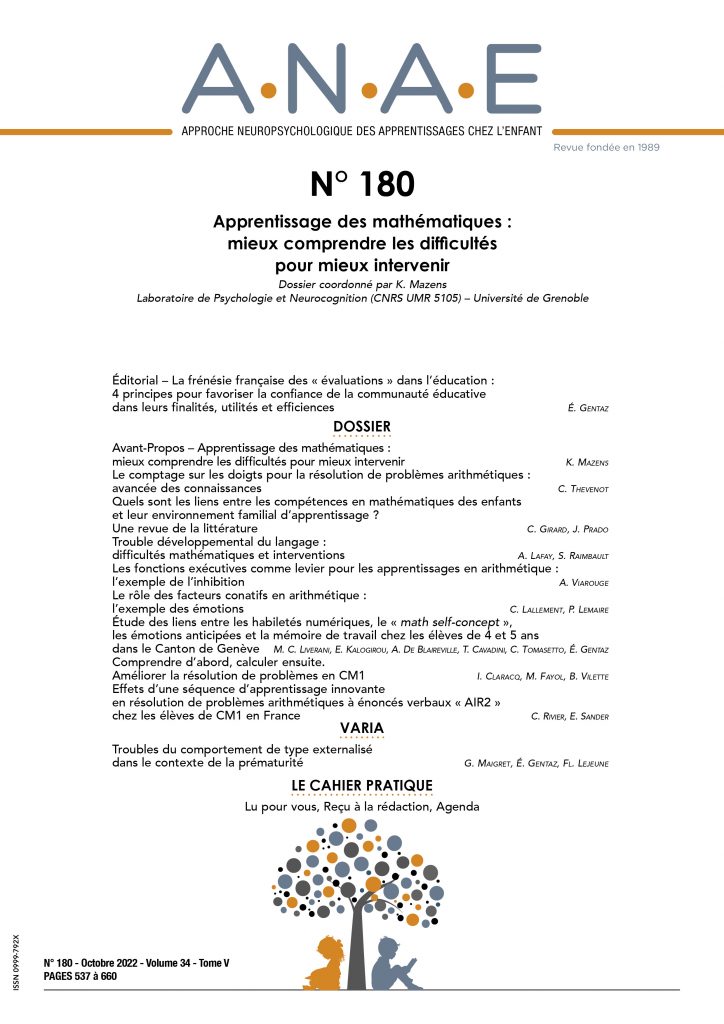 ANAE N° 197 – Les troubles dys au sein des troubles neurodéveloppementaux : des recherches scientifiques aux pratiques pédagogiques et thérapeutiques