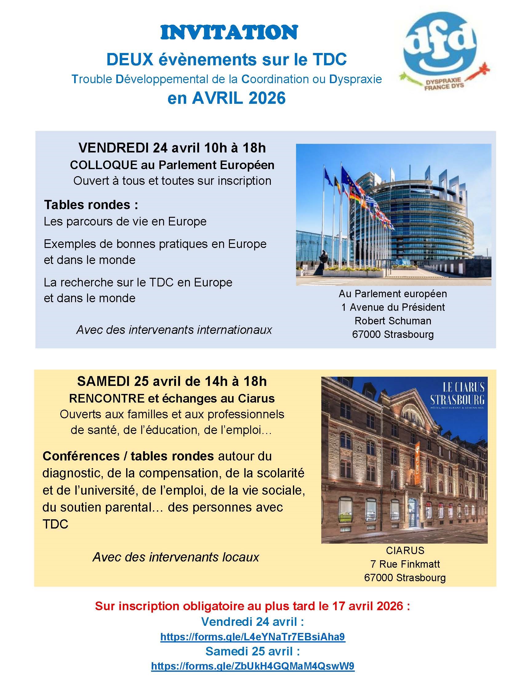 24 – 25 avril 2026 – Colloque et échanges sur le TDC ou dyspraxie