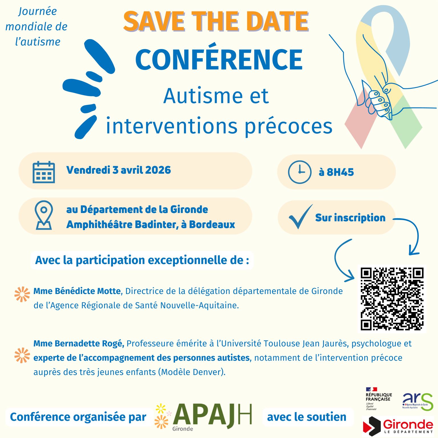 3 avril 2026 – Conférence : « Autisme et interventions précoces »