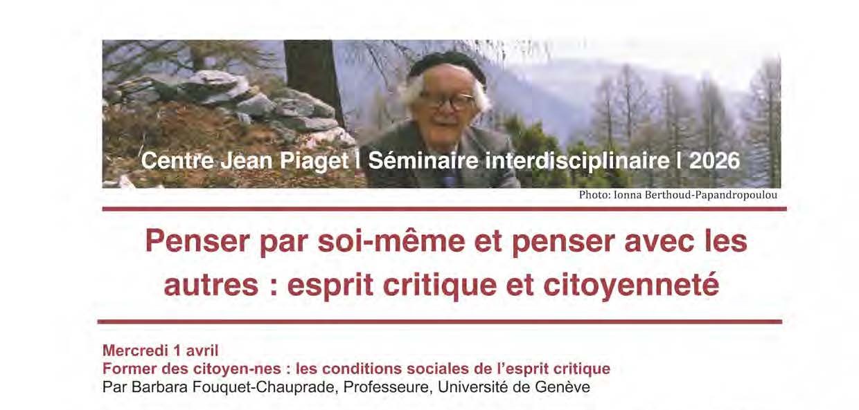 1er avril 2026 – Séminaire du Centre Jean Piaget – Former des citoyen-nes : les conditions sociales de l’esprit critique