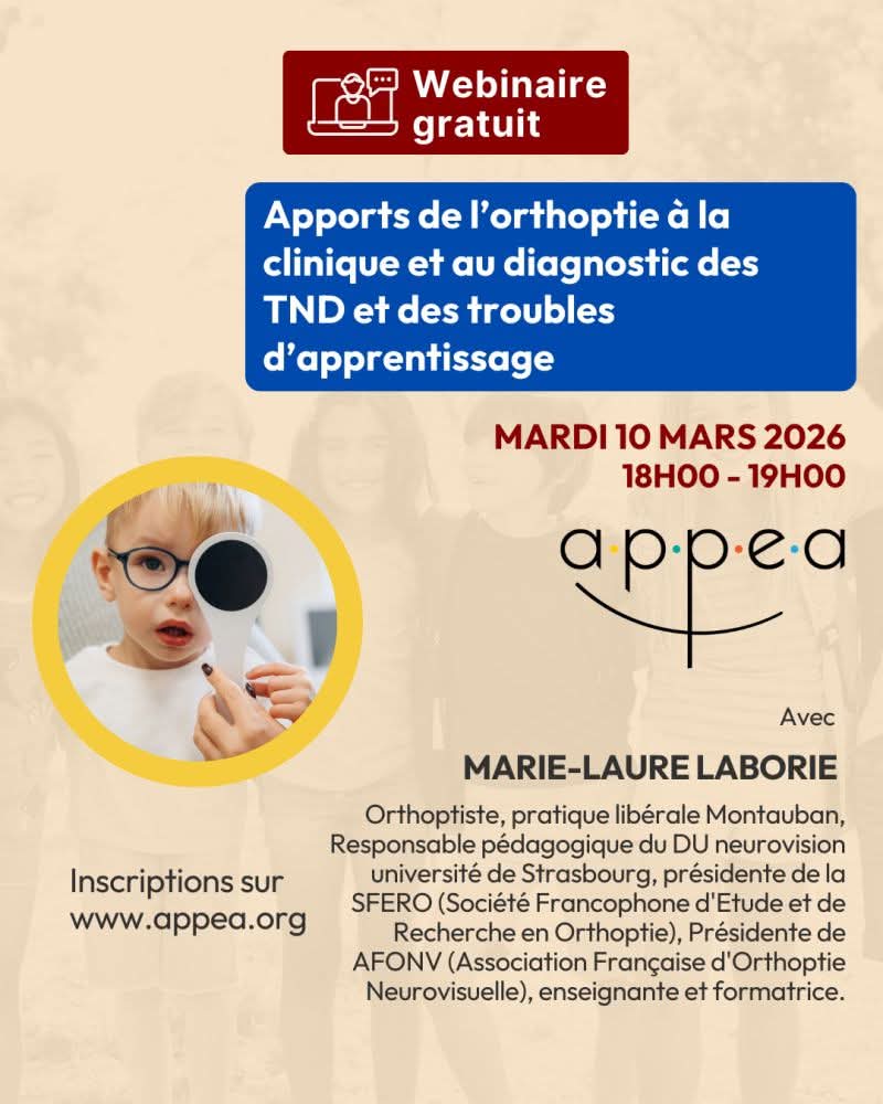 10 mars 2026 – Webinaire gratuit de l’APPEA – Apports de l’orthoptie à la clinique et au diagnostic des TND et des troubles d’apprentissage