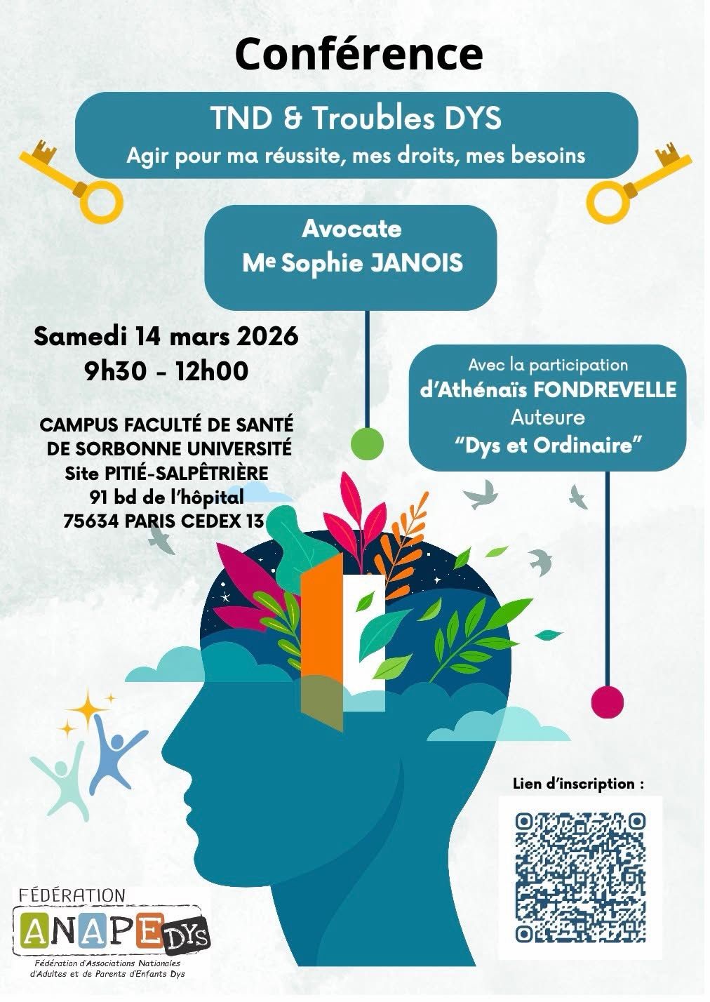14 mars 2026 – Conférence TND & Troubles DYS : comprendre ses droits pour agir concrètement