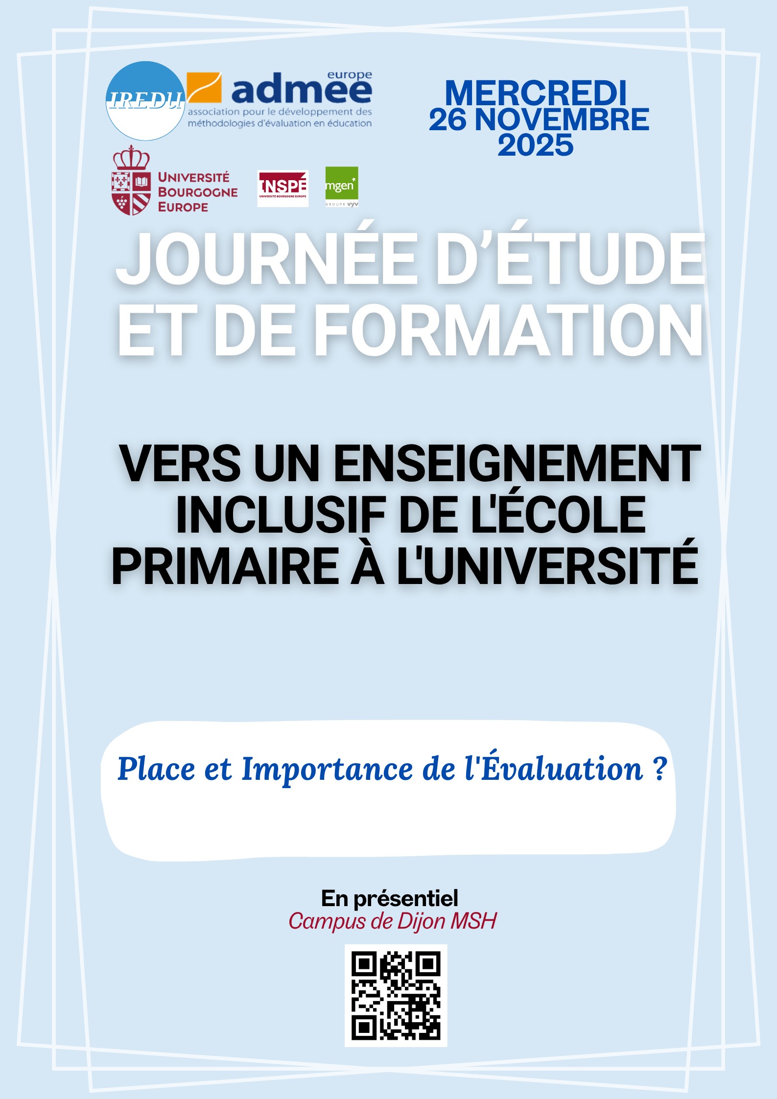 26 novembre 2025 – Journée d’étude et de formation « Vers un enseignement inclusif de l’école primaire à l’université : place et importance de l’évaluation ? »