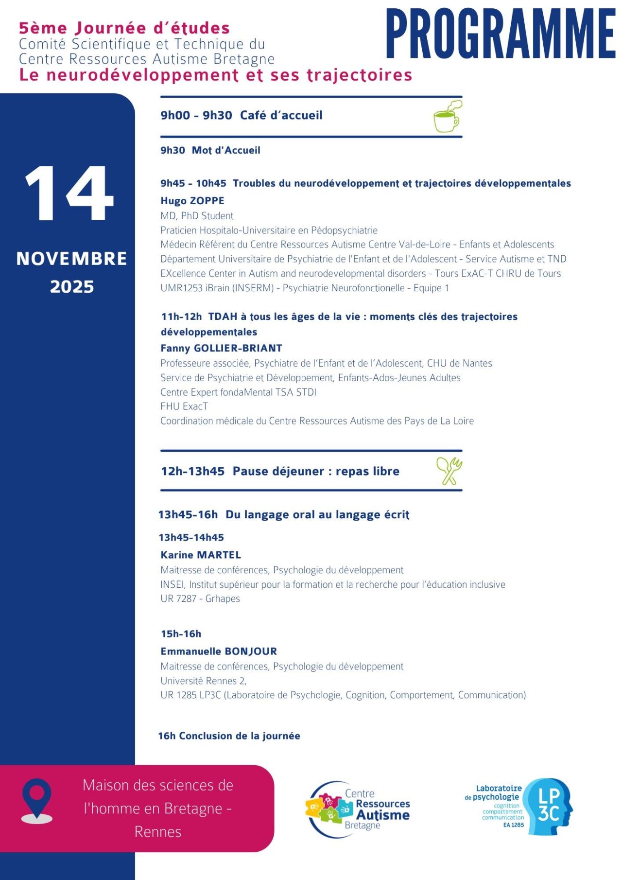 14 novembre 2025 – 5ème Journée d’étude – Le neurodéveloppement et ses trajectoires
