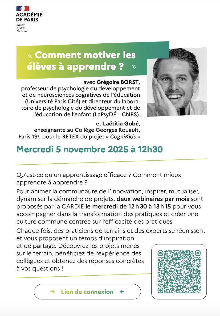 5 novembre 2025 – Webinaire CARDIE-CNR – « Comment motiver les élèves à apprendre ? »