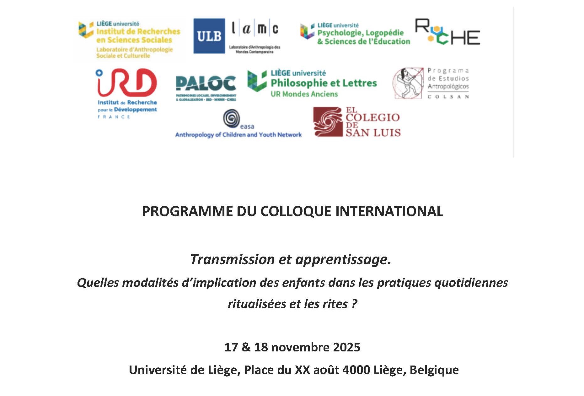 17 – 18 novembre 2025 – Colloque international « Transmission et apprentissage »