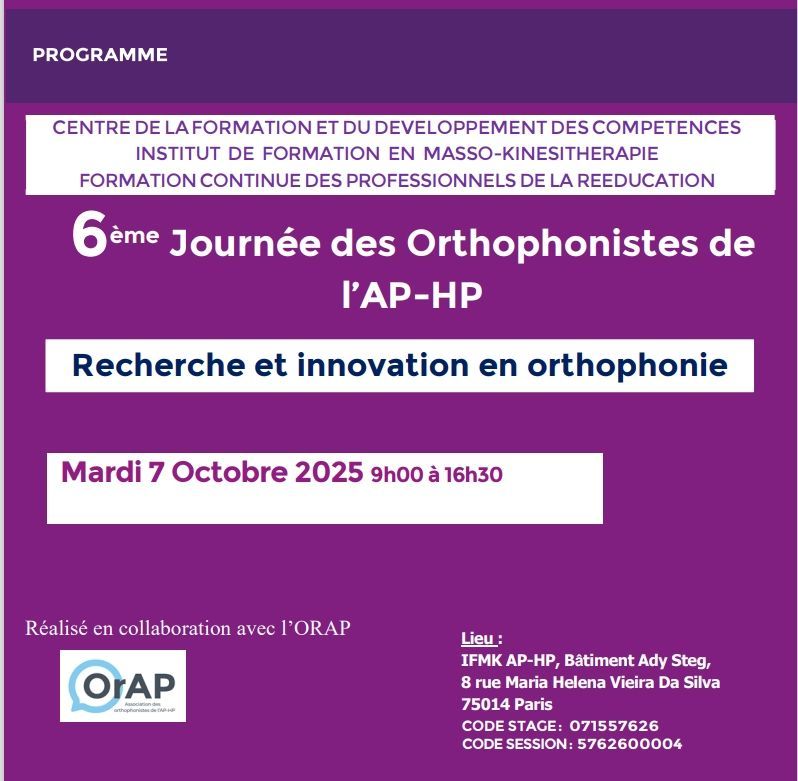 7 octobre 2025 – 6ème journée des orthophonistes sur la Recherche et l’innovation en orthophonie