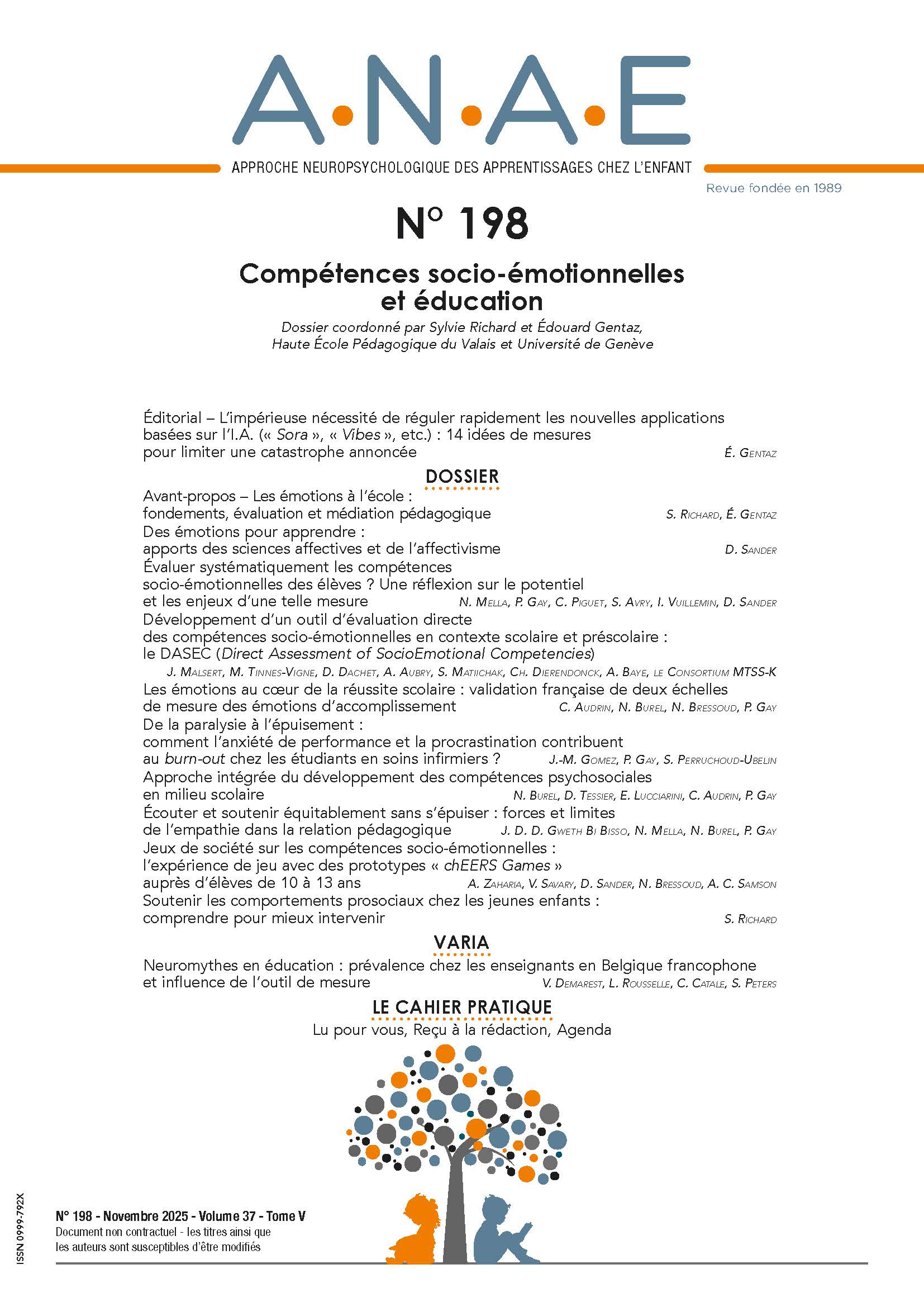 ANAE N° 197 – Les troubles dys au sein des troubles neurodéveloppementaux : des recherches scientifiques aux pratiques pédagogiques et thérapeutiques